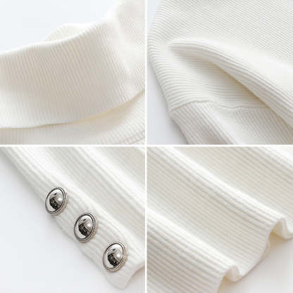 Elevate the style of your wardrobe with the iconic Milana turtleneck sweater, oversized as desired with its dropped shoulders and buttoned sleeves, this sweater is ribbed throughout for a tactile feel.