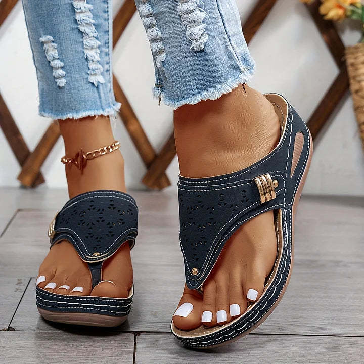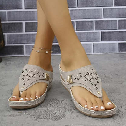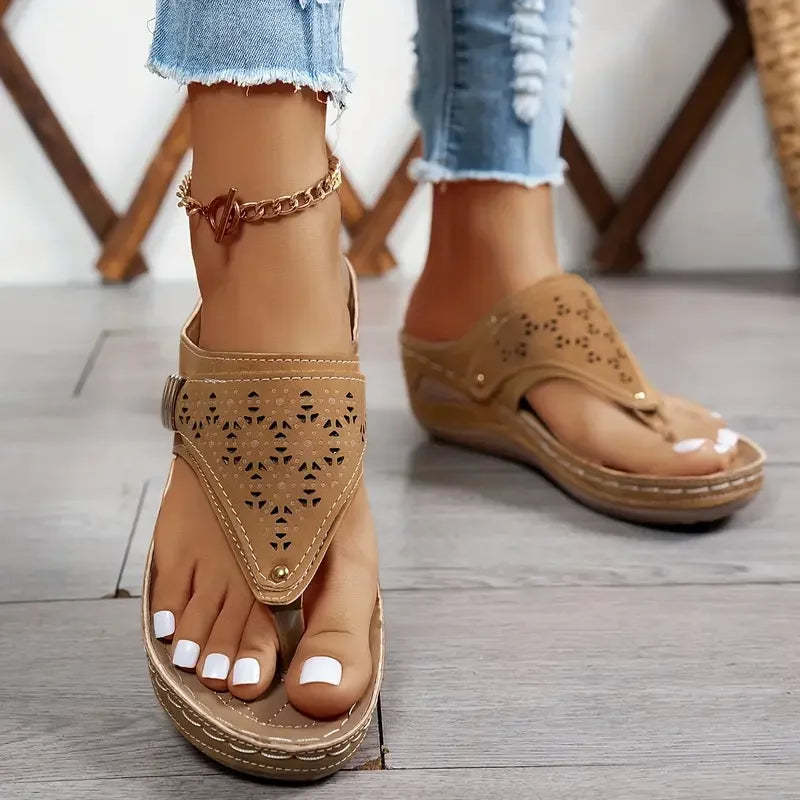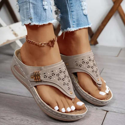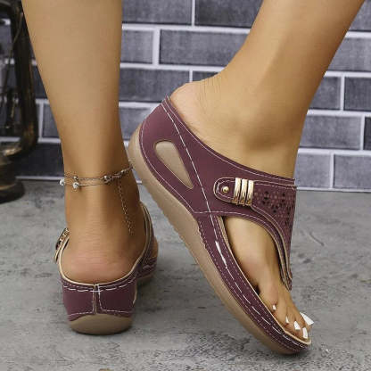 Comfortable all day long:Designed with a cushioned insole and a supportive wedge heel, the sandal keeps your feet happy from morning errands to evening strolls. The ergonomic sole reduces pressure on the heel and arch, making it ideal for extended wear. You'll appreciate the softness and stability of your steps every time you slip them on.